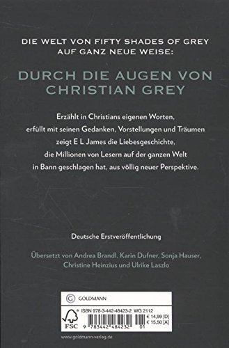 Erzählt aus Sicht der schönsten Augen der Welt - Christian Grey. Sehen Sie die Welt von Fifty Shades of Grey auf ganz neue Weise – durch die Augen von Christian Grey. Erzählt in Christians eigenen Worten, erfüllt mit seinen Gedanken, Vorstellungen und Träumen zeigt E L James die Liebesgeschichte, die Millionen von Lesern auf der ganzen Welt in Bann geschlagen hat, aus völlig neuer Perspektive. Christian Grey hat in seiner Welt alles perfekt unter Kontrolle. Sein Leben ist geordnet, diszipliniert und völlig leer – bis zu jenem Tag, als Anastasia Steele in sein Büro stürzt. Ihre Gestalt, ihre perfekten Gliedmassen und ihr weich fallendes braunes Haar stellen sein Leben auf den Kopf. Er versucht, sie zu vergessen und wird stattdessen von einem Sturm der Gefühle erfasst, den er nicht begreift und dem er nicht widerstehen kann. Anders als all die Frauen, die er bisher kannte, scheint die schüchterne, weltfremde Ana direkt in sein Innerstes zu blicken – vorbei an dem erfolgreichen Geschäftsmann, vorbei an Christians luxuriösem Lebensstil und mitten in sein zutiefst verletztes Herz. Kann Christian mit Ana an seiner Seite die Schrecken seiner Kindheit überwinden, die ihn noch immer jede Nacht verfolgen? Oder werden seine dunklen Begierden, sein Zwang zur Kontrolle und der Selbsthass, der seine Seele erfüllt, diese junge Frau vertreiben und damit die zerbrechliche Hoffnung auf Erlösung zerstören, die sie ihm bietet?