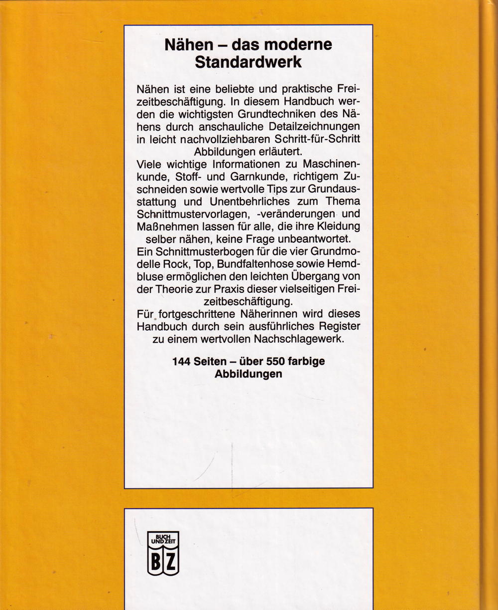 Viele wichtige Informationen zu Maschinenkunde, Stoff- und Garnkunde, richtigem Zuschneiden sowie wertvolle Tips zur Grundausstattung und Unentbehrliches zum Thema Schnittmustervorlagen, -veränderungen und Massnehmen lassen für alle, die ihre Kleidung selber nähen, keine Frage unbeantwortet.