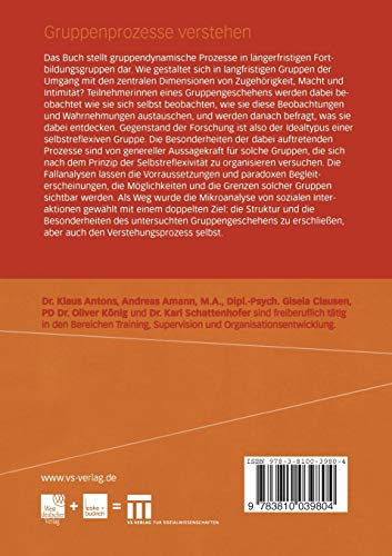 Wie gestaltet sich in langfristigen Gruppen der Umgang mit den zentralen Dimensionen von Zugehörigkeit, Macht und Intimität? Das Buch stellt gruppendynamische Prozesse in längerfristigen Fortbildungsgruppen dar. TeilnehmerInnen eines Gruppengeschehens werden dabei beobachtet, wie sie sich selbst beobachten, wie sie diese Beobachtungen und Wahrnehmungen austauschen, und werden danach befragt, was sie dabei entdecken. Gegenstand der Forschung ist also der Idealtypus einer selbstreflexiven Gruppe. Die Besonderheiten der dabei auftretenden Prozesse sind von genereller Aussagekraft für alle solche Gruppen, die sich nach dem Prinzip der Selbstreflexivität zu organisieren versuchen. Die Fallanalysen lassen die Voraussetzungen und paradoxen Begleiterscheinungen, die Möglichkeiten und die Grenzen solcher Gruppen sichtbar werden. Als Weg wurde die Mikroanalyse von sozialen Interaktionen gewählt mit einem doppelten Ziel: die Struktur und die Besonderheit des untersuchten Gruppengeschehens zu erschliessen, aber auch den Verstehensprozess selbst.