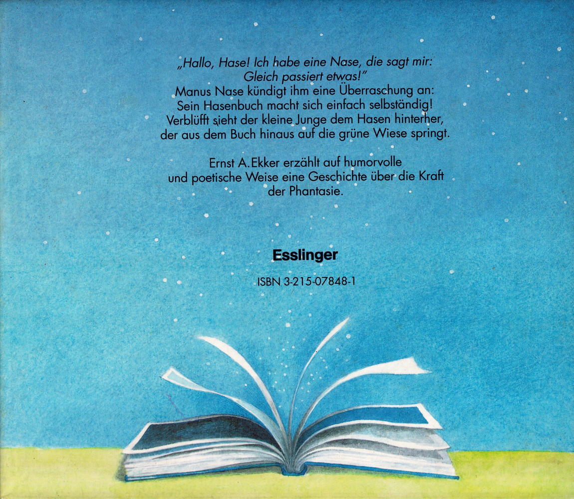 Hallo, Hase! Ich habe eine Nase, die sagt mir: Gleich passiert etwas! " Manus Nase kündigt ihm eine Uberraschung an: Sein Hasenbuch macht sich einfach selbständig! Verblüfft sieht der kleine Junge dem Hasen hinterher, der aus dem Buch hinaus auf die grüne Wiese springt.