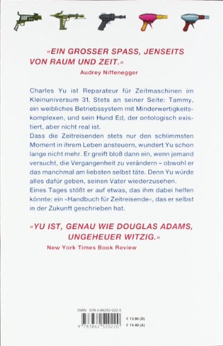 Charles Yu ist Reparateur für Zeitmaschinen im Kleinuniversum 31. Stets an seiner Seite: Tammy, ein weibliches Betriebssystem mit Minderwertigkeitskomplexen, und sein Hund Ed, der ontologisch existiert, aber nicht real ist. Dass die Zeitreisenden stets nur den schlimmsten Moment in ihrem Leben ansteuern, wundert Yu schon lange nicht mehr. Er greift bloss dann ein, wenn jemand versucht, die Vergangenheit zu verändern – obwohl er das manchmal am lieb¬sten selbst täte. Denn Yu würde alles dafür geben, seinen Vater wiederzusehen. Eines Tages stösst er auf etwas, das ihm dabei helfen könnte: ein «Handbuch für Zeitreisende», das er selbst in der Zukunft geschrieben hat.