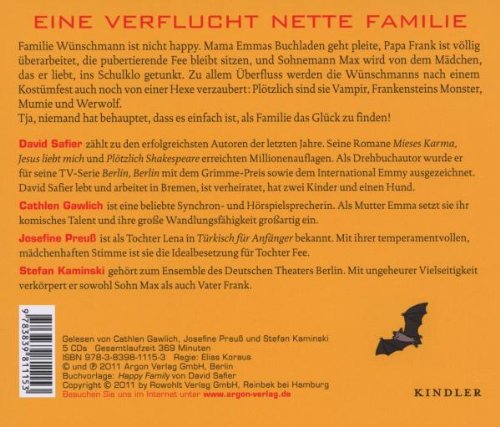 Familie Wünschmann ist nicht happy. Mama Emmas Buchladen geht Pleite, Papa Frank ist völlig überarbeitet, die pubertierende Fee bleibt sitzen und Sohnemann Max wird von dem Mädchen, das er liebt, ins Schulklo getunkt. Kein Wunder also, dass sich jeder mit jedem streitet. Und als ob das alles noch nicht genügen würde, werden die Wünschmanns nach einem Kostümfest auch noch von einer Hexe verzaubert: Plötzlich sind sie Vampir, Frankensteins Monster, Mumie und Werwolf.