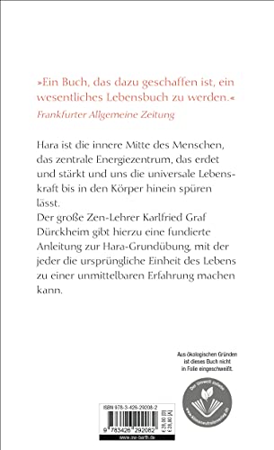 Hara heisst wörtlich übersetzt „Bauch“ und meint eine Verfassung des ganzen Menschen, in der er gelassen in seiner Leibesmitte ruht und frei ist von den Ängsten und Sorgen des kleinen Ich. Karlfried Graf Dürckheim erläutert Hara in seinem japanischen Kontext und zeigt danach anschaulich, dass es eine allgemeinmenschliche Bedeutung hat, die auch für uns westliche Menschen in höchstem Masse wichtig ist. Die zahlreichen praktischen Meditationsübungen, zu denen er einfühlsam und präzise anleitet, sind der ideale Weg, um die heilsame Verbindung zum göttlichen Sein herzustellen. Auf diese Weise findet man die eigene Mitte und stärkt die individuelle Lebenskraft.