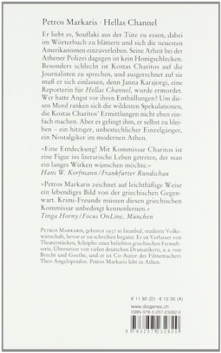 Er liebt es, Souflaki aus der Tüte zu essen, dabei im Wörterbuch zu blättern und sich die neuesten Amerikanismen einzuverleiben. Seine Arbeit bei der Athener Polizei dagegen ist kein Honigschlecken. Im Trubel um den Mord an der Reporterin von 'Hellas Channel' gelingt es Kostas Charitos dennoch stets, er selbst zu bleiben - ein hitziger Einzelgänger, ein Nostalgiker im modernen Athen.