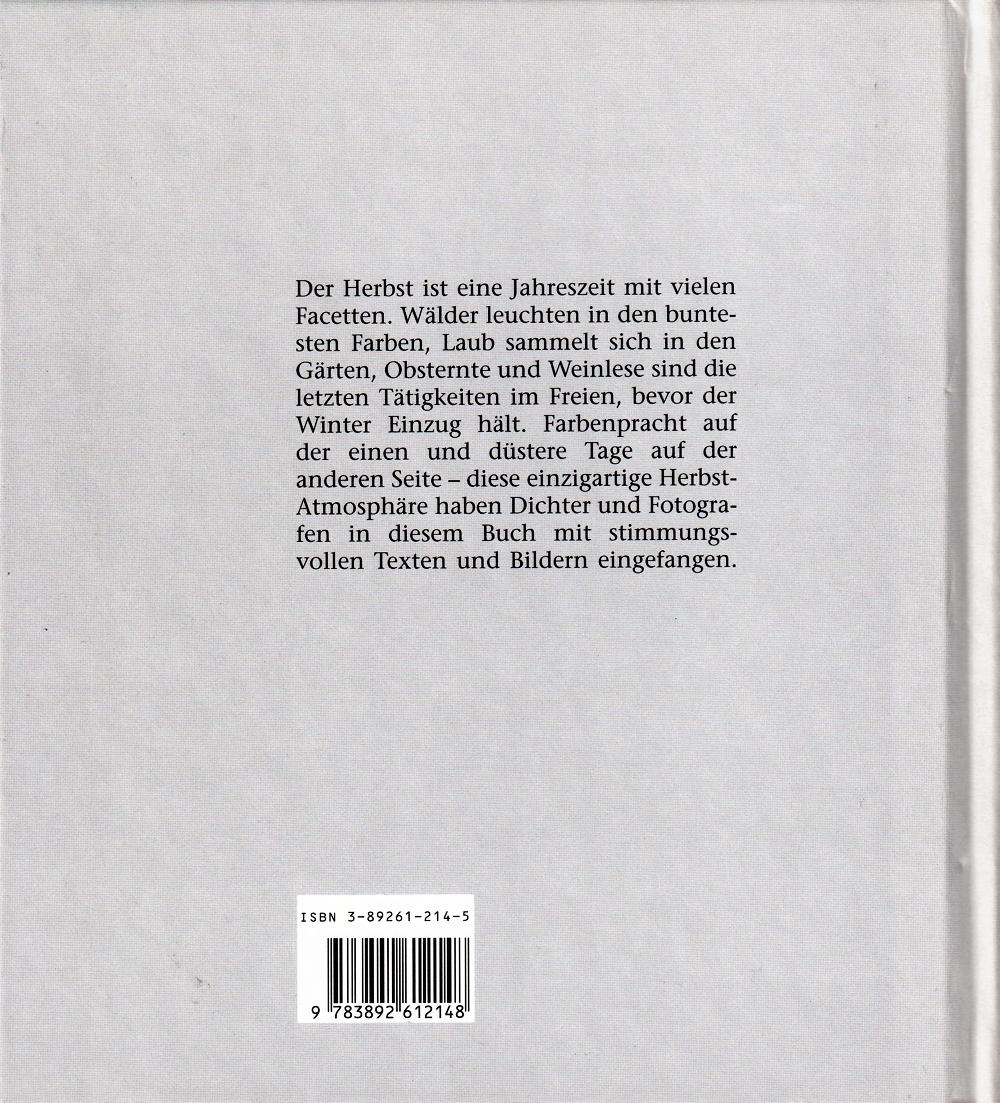 Der Herbst ist eine Jahreszeit mit vielen Facetten. Wälder leuchten in den buntesten Farben, Laub sammelt sich in den Gärten, Obsternte und Weinlese sind die letzten Tätigkeiten im Freien, bevor der Winter Einzug hält. Farbenpracht auf der einen und düstere Tage auf der anderen Seite diese einzigartige Herbst-Atmosphäre haben Dichter und Fotografen in diesem Buch mit stimmungsvollen Texten und Bildern eingefangen.