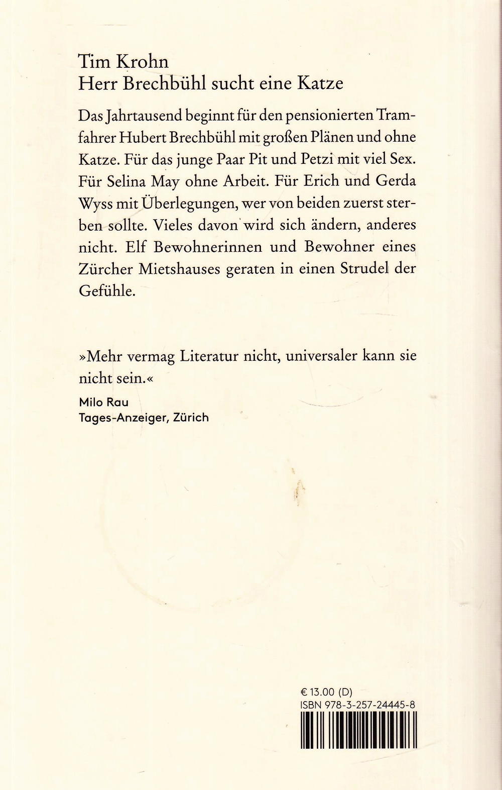 Das Jahrtausend beginnt für den pensionierten Tramfahrer Hubert Brechbühl mit grossen Plänen und ohne Katze. Für das junge Paar Pit und Petzi mit viel Sex. Für Selina May ohne Arbeit. Für Erich und Gerda Wyss mit Überlegungen, wer von beiden zuerst sterben sollte. Vieles davon wird sich ändern, anderes nicht. Elf Bewohnerinnen und Bewohner eines Zürcher Mietshauses geraten in einen Strudel der Gefühle.