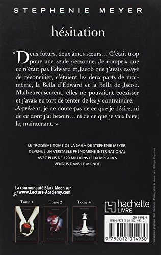 " Deux futurs, deux âmes soeurs... C'était trop pour une seule personne. Je compris que ce n'était pas Edward et Jacob que j'avais essayé de réconcilier, c'étaient les deux parts de moi-même, la Bella d'Edward et la Bella de Jacob. Malheureusement, elles ne pouvaient coexister et j'avais eu tort de tenter de les y contraindre. A présent, je ne doute pas de ce que je désire, ni de ce dont j'ai besoin... ni de ce que je vais faire, là, maintenant. "