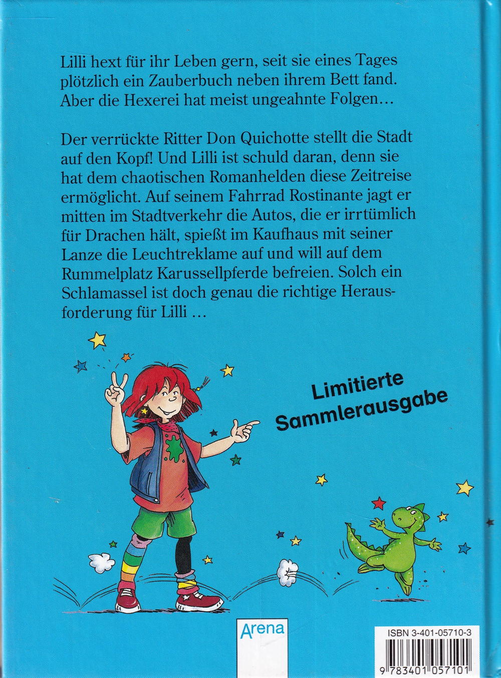 Lilli hext für ihr Leben gern, seit sie eines Tages plötzlich ein Zauberbuch neben ihrem Bett fand Aber die Hexerei hat meist ungeahnte Folgen. Der verrückte Ritter Don Quichotte stellt die Stadt auf den Kopf! Und Lilli is Ist schuld daran, denn sie hat dem chaotischen Romanhelden diese Zeitreise ermöglicht. Auf seinem Fahrrad Rostinante jagt er mitten im Stadtverkehr die Autos, die er irrtümlich für Drachen hält, spiesst im Kaufhaus mit seiner Lanze die Leuchtreklame auf und will auf dem Rummelplatz Karussellpferde befreien. Solch ein Schlamassel ist doch genau die richtige Herausforderung für Lilli.