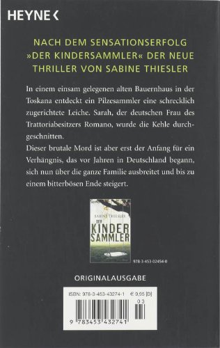 Ein Pilzesammler entdeckt in einem einsam gelegenen alten Bauernhaus in der Toscana eine schlimm zugerichtete Leiche. Der deutschstämmigen Sarah, Frau des Trattoria-Besitzers Romano, hat jemand die Kehle durchgeschnitten. Dieser Mord ist aber erst der Anfang für ein Verhängnis, das vor Jahren in Deutschland begann, sich nun über die ganze Familie auszubreiten beginnt und sich bis zu einem bitterbösen Ende steigert.