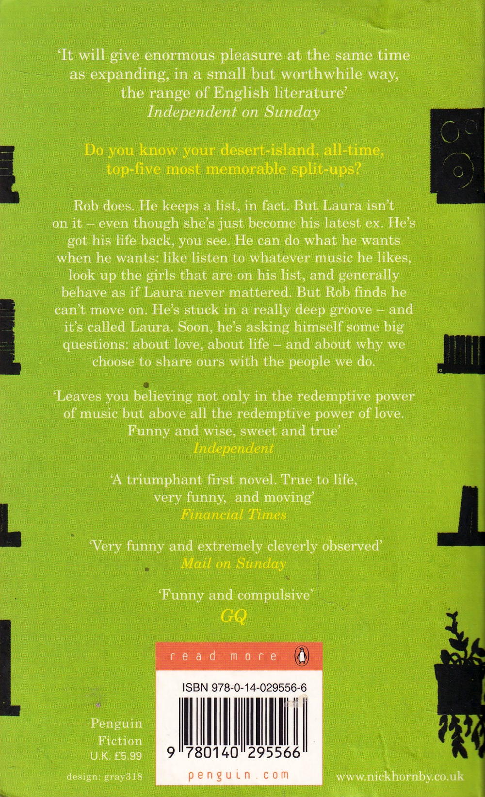 Is it possible to share your life with someone whose record collection is incompatible with your own? Can people have terrible taste and still be worth knowing? For Rob Fleming, thirty-five years old, a pop addict and owner of a failing record shop, these are the sort of questions that need an answer, and soon.