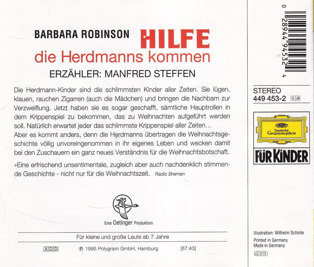 Die Herdmann-Kinder sind die schlimmsten Kinder aller Zeiten. Sie lügen, klauen, rauchen Zigarren (auch die Mädchen) und bringen die Nachbarn zur Verzweiflung. Jetzt haben sie es sogar geschafft, sämtliche Hauptrollen in dem Krippenspiel zu bekommen, das zu Weihnachten aufgeführt werden soll. Natürlich erwartet jeder das schlimmste Krippenspiel aller Zeiten...