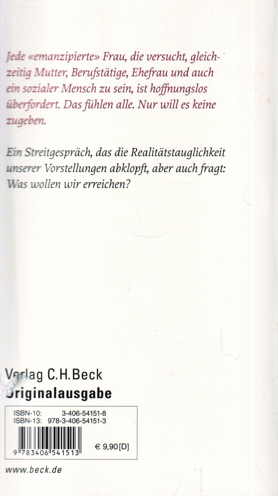 Jede emanzipierte Frau, die versucht gleichzeitig Mutter, Berufstätige, Ehefrau und auch ein sozialer Mensch zu sein, ist hoffnungslos überfordert. Das fühlen alle. Nur will es keine zugeben. Schafft eine Frau nicht das volle Programm, steht sie unter Verdacht, erhebliche Defizite zu haben: ohne Kinder gilt sie als karrierebesessen; mit Kindern als Hausfrau als zurückgeblieben; mit Kindern und berufstätig ist sie eine Rabenmutter. Dieses Buch will in der Beschreibung des alltäglichen Wahnsinns das Tabu der perfekten Frau und Mutter brechen. Himmel und Hölle der Emanzipation aufzeigen. Denkanstösse geben. Zum Lachen bringen. Und eigene Lösungsperspektiven entwickeln und aufzeigen. Maya Onken, 37-jährig, verheiratet, zwei Kinder, berufstätig, Haus in der Vorstadt, schreibt ihrer Mutter von der Unmöglichkeit, Job und Muttersein unter einen Hut zu bringen. Julia Onken antwortet und versucht, die Tochter auf das aufmerksam zu machen, was diese nicht sehen will. Ein Streitgespräch, das die Augen öffnet, in welchen Überforderungen wir uns bewegen.
