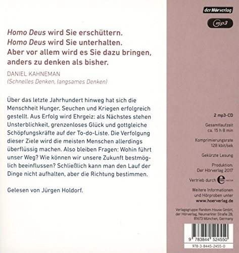 Über das letzte Jahrhundert hinweg hat sich die Menschheit erfolgreich Hunger, Seuchen und Kriegen gestellt. Aus Erfolg wird Ehrgeiz: Als nächstes stehen Unsterblichkeit, grenzenloses Glück und gottgleiche Schöpfungskräfte auf der To-Do-Liste. Die Verfolgung dieser Ziele wird die meisten Menschen allerdings überflüssig machen. Also bleiben Fragen: Wohin führt unser Weg? Wie können wir unsere Zukunft bestmöglich beeinflussen? Schliesslich kann man den Lauf der Dinge nicht aufhalten, aber die Richtung bestimmen. Gelesen von Jürgen Holdorf. (2 mp3-CDs, Laufzeit: 15h 8)