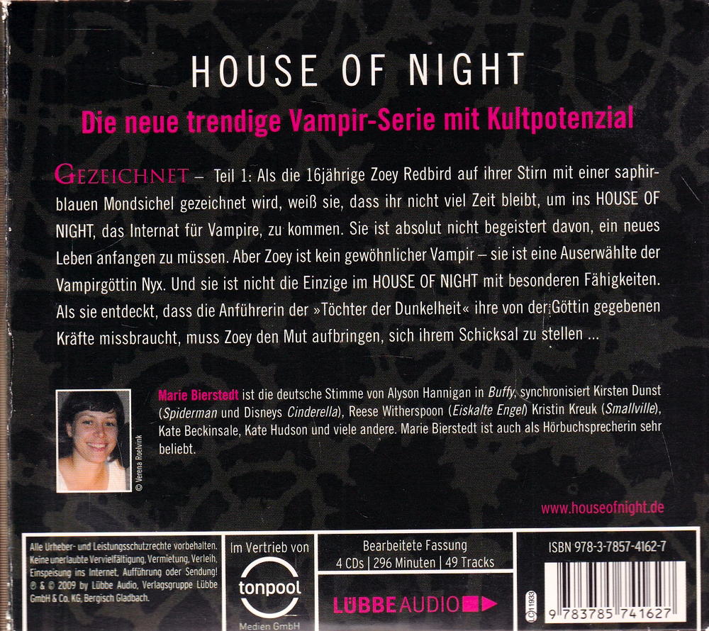 Als die 16jährige Zoey Redbird auf ihrer Stirn mit einer saphirblauen Mondsichel gezeichnet wird, weiss sie, dass ihr nicht viel Zeit bleibt, um ins HOUSE OF NIGHT, das Internat für Vampire, zu kommen. Sie ist absolut nicht begeistert davon, ein neues Leben anfangen zu müssen. Aber Zoey ist kein gewöhnlicher Vampir - sie ist eine Auserwählte der Vampirgöttin Nyx. Und sie ist nicht die Einzige im HOUSE OF NIGHT mit besonderen Fähigkeiten. Als sie entdeckt, dass die Anführerin der »Töchter der Dunkelheit« ihre von der Göttin gegebenen Kräfte missbraucht, muss Zoey den Mut aufbringen, sich ihrem Schicksal zu stellen ...
