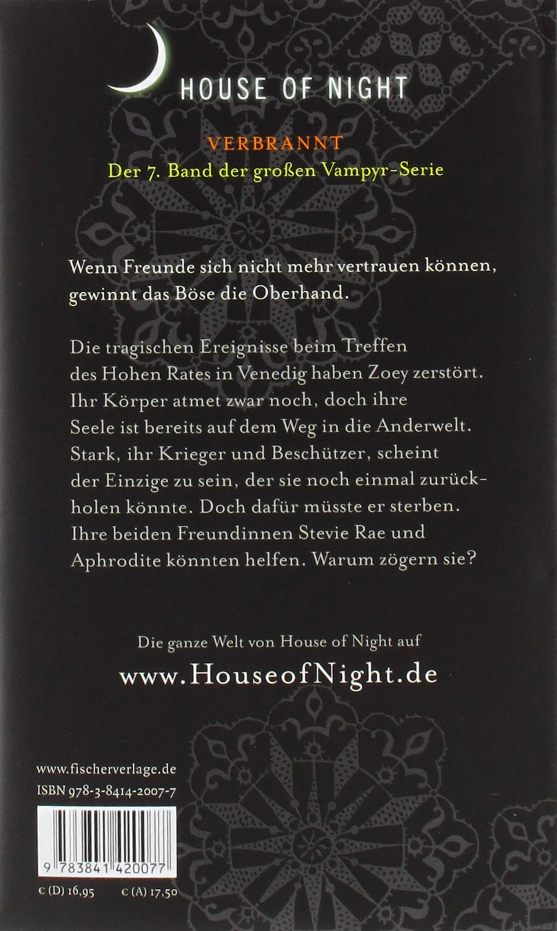 Die Dinge stehen schlecht im House of Night. Zoeys Seele ist zerschmettert. Um sie herum ist alles zerstört, wofür sie je gekämpft hat. Und mit einem gebrochenen Herzen will sie lieber in der Schattenwelt bleiben. Stark scheint der Einzige zu sein, der zu ihr durchdringen könnte, doch dafür müsste er sterben. Und das würde Zoey umbringen. Doch auch Stevie Rae und Aphrodite könnten helfen, wenn sie nur wollten. Warum zögern sie? Ein Spiel mit dem Feuer, das alle verbrennen könnte...