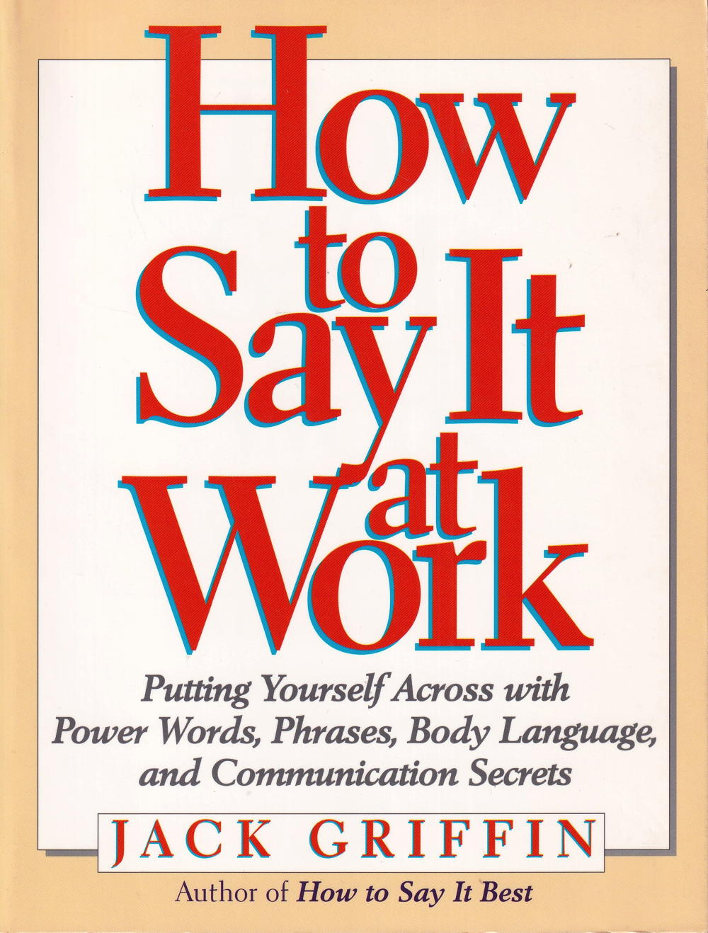 In his new book, How To Say It At Work: Putting Yourself Across with Power Words, Phrases, Body Language, and Communication Secrets (Prentice Hall Press, June 1998), Communications expert Jack Griffin brings together verbal and non-verbal strategies for communication in one easy to read book that would otherwise only be found in half a dozen assorted titles. Arranged into two parts, this book will teach the reader systematically how to improve on his or her communication skills. Part I emphasizes determining what the reader needs to improve the most. By using the self-test, a person can pinpoint exactly what areas of communication they have the most difficulty in. Part II shows how to improve on the problems predeterm! ined in Part I by providing power words, surprising facts, secret techniques, real-world strategies, and special phrases. Part II will also teach the reader the art of nonverbal communication. Nothing you do in business is as important as putting yourself across.