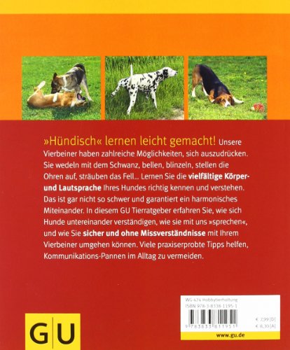 Unsere Vierbeiner beherrschen vielfältige Kommunikationsmittel, um ihre Bedürfnisse anzumelden. Sie wedeln mit dem Schwanz, bellen, blinzeln, stellen die Ohren auf, sträuben das Haar - Aber interpretieren wir die Signale auch richtig? Lernen Sie doch einfach Hündisch. Das ist gar nicht so schwer und garantiert ein harmonisches Zusammenleben. Im neuen GU Tierratgeber Hundesprache erfahren Sie, wie sich Hunde untereinander verständigen, wie sie mit uns sprechen, und wie Sie mit Ihrem Vierbeiner sicher und ohne Missverständnisse umgehen können. Die Autorin Katharina Schlegl-Kofler gibt viele wertvolle Tipps, wie sich Kommunikations-Pannen im täglichen Miteinander von Mensch und Hund vermeiden lassen. Der Verhaltensdolmetscher erklärt typische Verhaltensweisen unserer Vierbeiner. Und mit Hilfe der 10 GU-Erfolgstipps verstehen Sie Ihren Hund garantiert immer richtig.