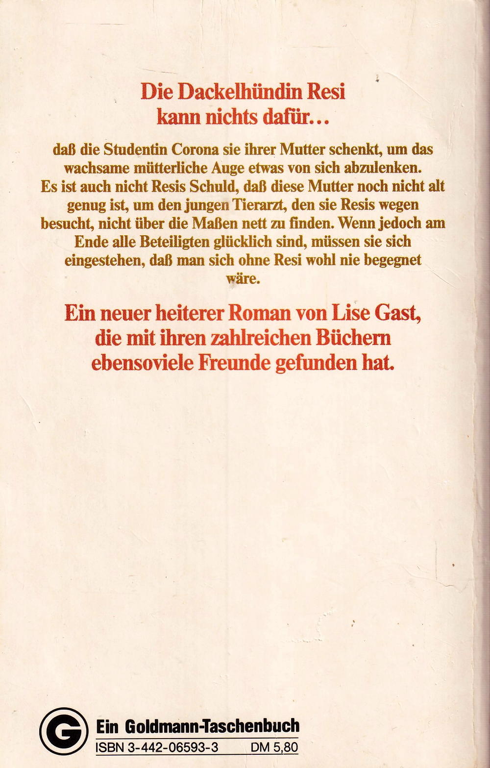 Die Dackelhündin Resi kann nichts dafür... dass die Studentin Corona sie ihrer Mutter schenkt, um das wachsame mütterliche Auge etwas von sich abzulenken.