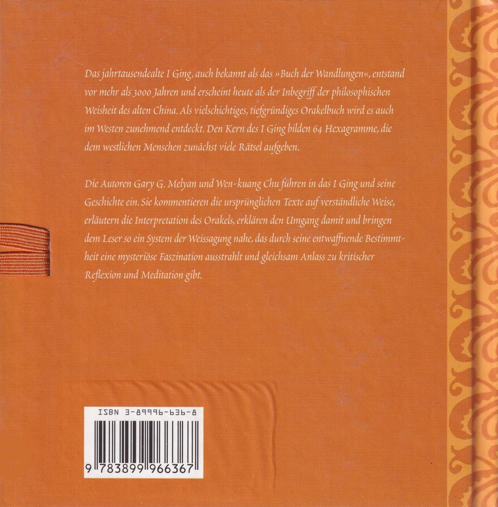 Die Autoren Gary G. Melyan und Wen-kuang Chu führen in das I Ging und seine Geschichte ein. Sie kommentieren die ursprünglichen Texte auf verständliche Weise, erläutern die Interpretation des Orakels, erklären den Umgang damit und bringen dem Leser so ein System der Weissagung nahe, das durch seine entwaffnende Bestimmtheit eine mysteriöse Faszination ausstrahlt und gleichsam Anlass zu kritischer Reflexion und Meditation gibt.