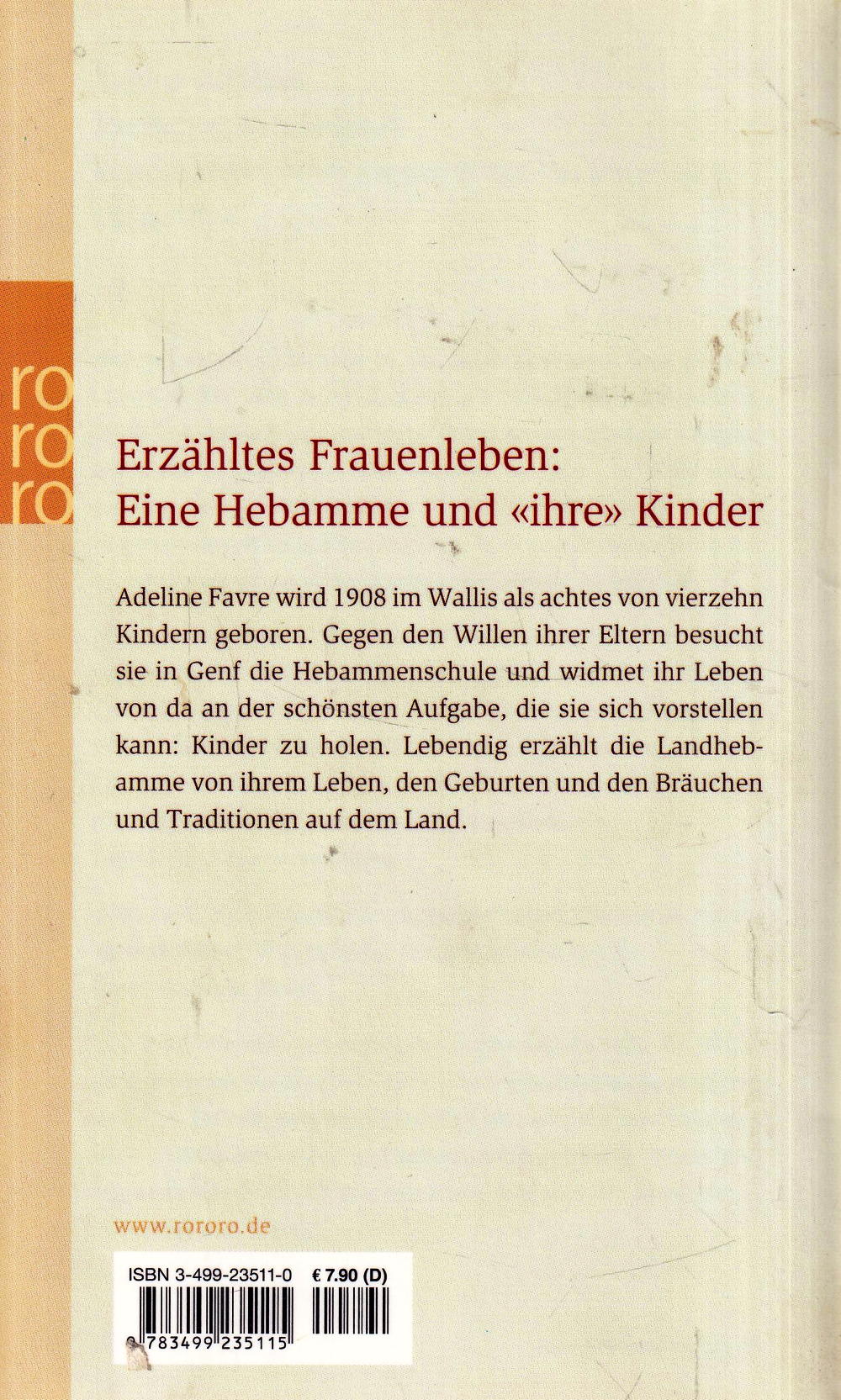 Adeline Favre wird 1908 im Wallis als achtes von vierzehn Kindern geboren. Gegen den Willen ihrer Eltern besucht sie in Genf die Hebammenschule und widmet ihr Leben von da an der schönsten Aufgabe, die sie sich vorstellen kann: Kinder zu holen. Lebendig erzählt die Landhebamme von ihrem Leben, den Geburten, und den Bräuchen und Traditionen auf dem Land.