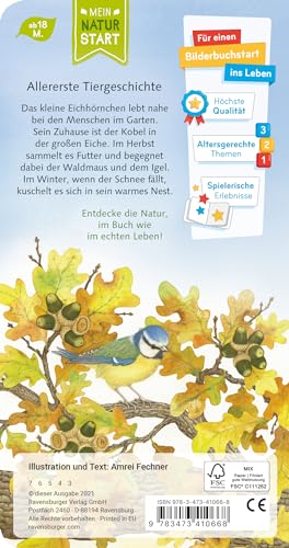 Hoch oben in der Eiche hat das kleine Eichhörnchen sein Zuhause. Dort hat es sich einen Kobel gebaut. Im Herbst sammelt es reichlich Futter für den Winter und begegnet dabei dem Igel und der Waldmaus. Im Winter, wenn der Schnee fällt, kuschelt es sich in sein warmes Nest. Eine liebevolle Vorlesegeschichte, mit einprägsamem Text für kleine Naturentdecker.