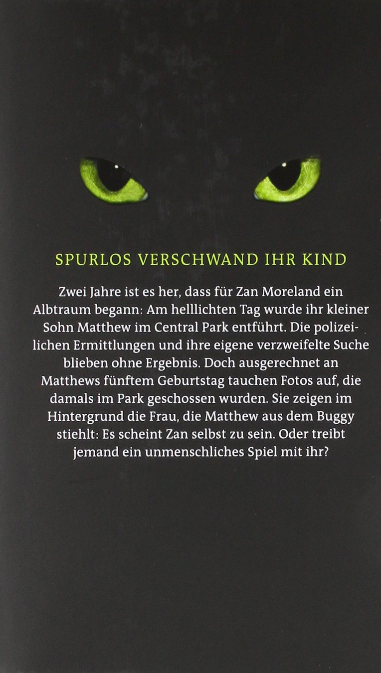 Zwei Jahre ist es her, dass für Zan Moreland ein Alptraum begann: Am helllichten Tag wurde ihr kleiner Sohn Matthew im Central Park entführt. Die polizeilichen Ermittlungen und ihre eigene verzweifelte Suche blieben ohne Ergebnis. Doch ausgerechnet an Matthews fünftem Geburtstag tauchen Fotos auf, die damals im Park geschossen wurden. Sie zeigen im Hintergrund die Frau, die Matthew aus dem Kinderwagen stiehlt. Es ist Zan selbst . . .