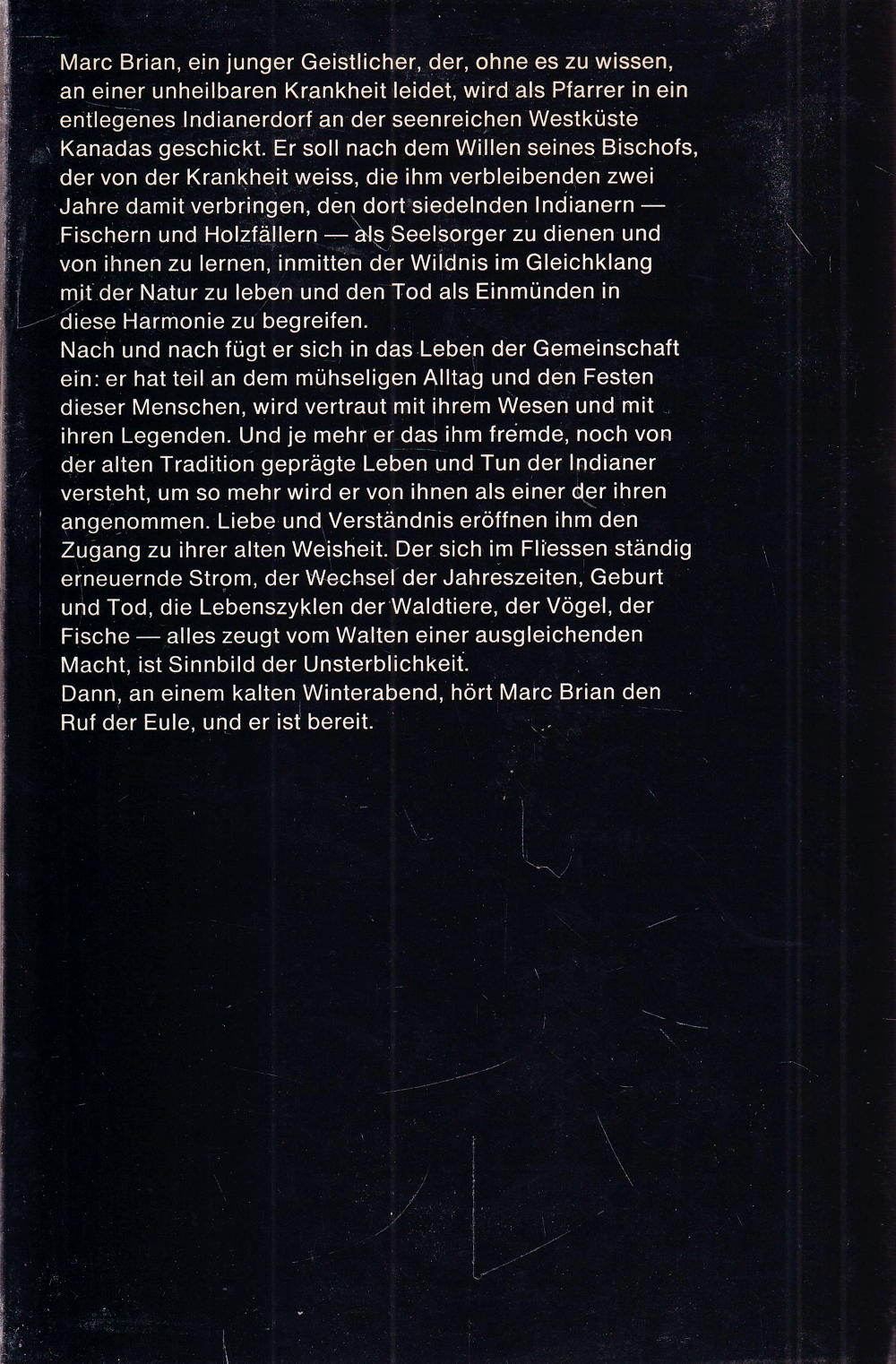 Nach und nach fügt er sich in das Leben der Gemeinschaft ein: er hat teil an dem mühseligen Alltag und den Festen dieser Menschen, wird vertraut mit ihrem Wesen und mit ihren Legenden. Und je mehr er das ihm fremde, noch von der alten Tradition geprägte Leben und Tun der Indianer versteht, um so mehr wird er von ihnen als einer der ihren angenommen. Liebe und Verständnis eröffnen ihm den Zugang zu ihrer alten Weisheit. Der sich im Fliessen ständig erneuernde Strom, der WWechsel der Jahreszeiten, Geburt und Tod, die Lebenszyklen der Waldtiere, der Vögel, der Fische – alles zeugt vom Walten einer ausgleichenden -Macht, ist Sinnbild der Unsterblichkeit.
