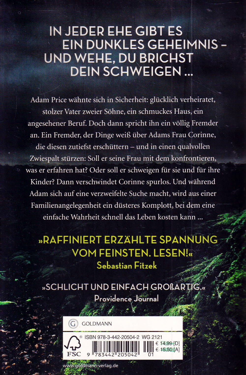 In jeder Ehe gibt es dunkle Geheimnisse - das muss auch Adam Price erfahren, stolzer Vater zweier Söhne und seit vielen Jahren glücklich verheiratet mit der scheinbar perfekten Corinne. Bis ihn eines Tages ein völlig Fremder anspricht. Ein Fremder, der Dinge weiss über Corinne, die Adams amerikanischen Vorstadttraum abrupt zerplatzen lassen - und ihn in einen wilden Zwiespalt stürzen: Soll er seine Frau mit dem konfrontieren, was er erfahren hat? Oder soll er schweigen für sie und für ihre Kinder? Und wer ist überhaupt dieser geheimnisvolle Fremde, warum will er Adams Familie zerstören? Dann verschwindet Corinne spurlos. Und während Adam sich auf eine verzweifelte Suche macht, wird aus einer Familienangelegenheit ein düsteres Komplott, bei dem eine einfache Wahrheit Leben kosten kann ...