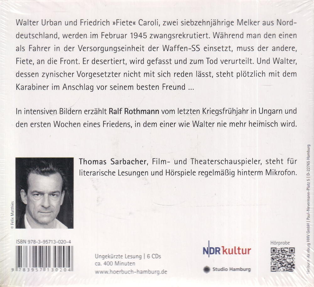 Walter Urban und Friedrich »Fiete« Caroli, zwei siebzehnjährige Melker aus Norddeutschland, werden im Februar 1945 zwangsrekrutiert. Während man den einen als Fahrer in der Versorgungseinheit der Waffen-SS einsetzt, muss der andere, Fiete, an die Front. Er desertiert, wird gefasst und zum Tod verurteilt. Und Walter, dessen zynischer Vorgesetzter nicht mit sich reden lässt, steht plötzlich mit dem Karabiner im Anschlag vor seinem besten Freund...