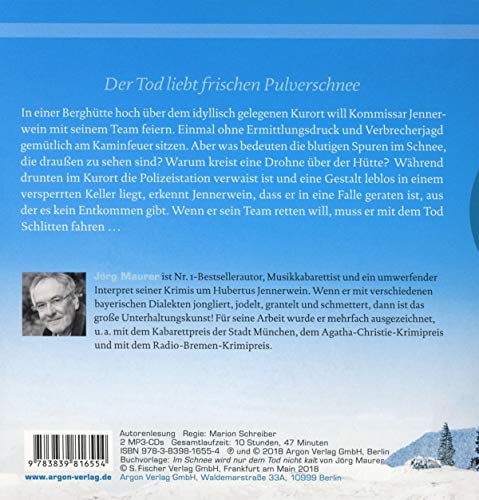 In einer verschneiten Berghütte hoch über dem idyllisch gelegenen Kurort will Kommissar Jennerwein mit seinem Team feiern. Einmal ohne Ermittlungsdruck und Verbrecherjagd gemütlich am Kaminfeuer sitzen und Geschichten erzählen. Aber was bedeuten die blutigen Spuren im Schnee, die draussen zu sehen sind? Warum kreist eine Drohne über der Hütte? Und welcher unheimliche Schatten streift durch die Nacht? Während unten im Kurort die Polizeistation verwaist ist und eine leblose Gestalt gefesselt in einem Keller liegt, erkennt Jennerwein, dass er in eine Falle geraten ist, aus der es kein Entkommen gibt. Wenn er sein Team retten will, muss er mit dem Tod Schlitten fahren.