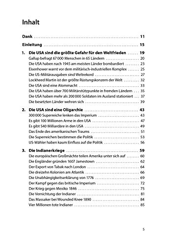 Viele betrachten die USA als die grösste Gefahr für den Weltfrieden. Woran liegt das? Ein Buch über Hintergründe, Motive und Mittel der Weltmacht USA. Nach Ansicht vieler haben die USA den stärksten destabilisierenden Einfluss auf das Weltgeschehen und stellen somit die grösste Bedrohung für den Weltfrieden dar (Allensbach 2019). Diese traurige Spitzenstellung hat sich die Weltmacht Nr. 1 nicht von ungefähr erworben. Keine andere Nation hat seit 1945 so viele andere Länder bombardiert und so viele Regierungen gestürzt wie die USA. Sie unterhalten die meisten Militärstützpunkte, exportieren die meisten Waffen und haben den höchsten Rüstungsetat der Welt. Daniele Ganser beschreibt eindrücklich, wie die USA Weltmachtpolitik betreiben, in der Gewalt ein zentrales Element darstellt.