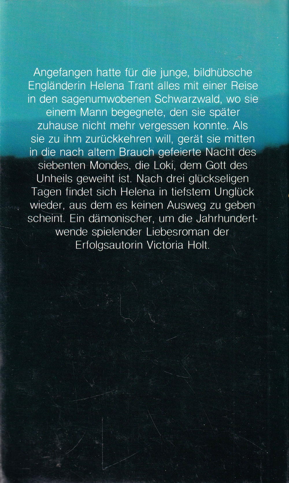 Angefangen hatte für die junge, bildhübsche Engländerin Helena Trant alles mit einer Reise in den sagenumwobenen Schwarzwald, wo sie einem Mann begegnete, den sie später zuhause nicht mehr vergessen konnte. Als sie zu ihm zurückkehren will, gerät sie mitten in die nach altem Brauch gefeierte Nacht des siebenten Mondes, die Loki, dem Gott des Unheils geweiht ist. Nach drei glückseligen Tagen findet sich Helena in tiefstem Unglück wieder, aus dem es keinen Ausweg zu geben scheint. Ein dämonischer, um die Jahrhundertwende spielender Liebesroman der Erfolgsautorin Victoria Holt.