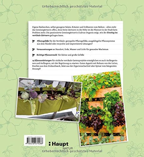 Eigene Radieschen, selbst gezogene Salate, Kräuter und Erdbeeren vom Balkon allen steht das Gemüsegärtnern offen, denn beim Gärtnern in die Höhe ist die Platznot in der Stadt kein Problem mehr. Vertikale Gärten sind in, seien es bewachsene Fassaden oder gestapelte Pflanzgefässe, ausgeklügelte Pflanzsysteme oder recycelte und improvisierte Lösungen. Die passionierte Gemüsegärtnerin Gudrun Ongania zeigt, wie der Einstieg ins vertikale Gärtnern gelingen kann.