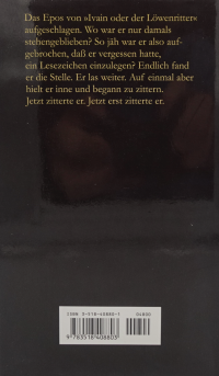 Das Epos von »Ivain oder der Löwenritter« aufgeschlagen. Wo war er nur damals stehengeblieben? So jäh war er also aufgebrochen, daß er vergessen hatte, ein Lesezeichen einzulegen? Endlich fand er die Stelle. Er las weiter. Auf einmal aber hielt er inne und begann zu zittern.
