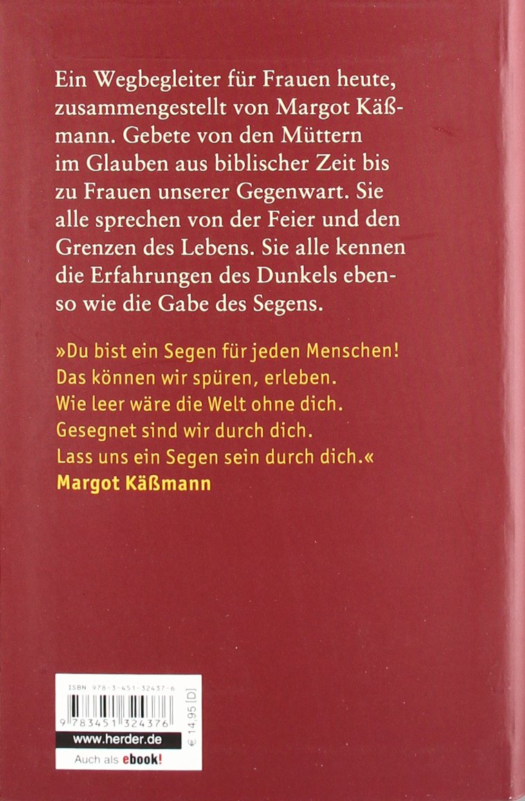 Ein Wegbegleiter für Frauen heute, zusammengestellt von Margot Kässmann. Gebete von den Müttern im Glauben aus biblischer Zeit bis zu Frauen unserer Gegenwart. Sie alle sprechen von der Feier und den Grenzen des Lebens. Sie alle kennen die Erfahrungen des Dunkels ebenso wie die Gabe des Segens.