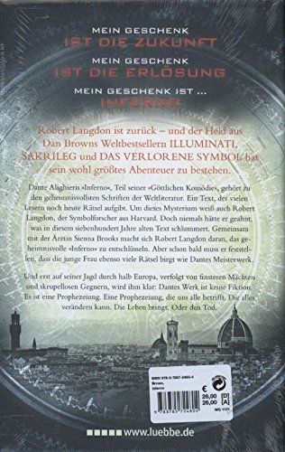 Endlich ist es endlich soweit: Der Symbolforscher Robert Langdon ermittelt in seinem neuen Fall wieder in Europa. Der sympathische Symbologe aus Harvard ist Dan Browns beliebtester Charakter. Nun widmet sich Langdon nach Sakrileg, Illuminati und Das verlorene Symbol erneut den Rätseln der Vergangenheit. Das weltweite Erscheinen des neuen Thrillers Inferno am 14. Mai 2013 markiert Robert Langdons Rückkehr nach Europa. Der Symbolforscher aus Harvard wird in Italien mit Geheimnissen, Rätseln und einer Verschwörung konfrontiert, die ihre Wurzeln in einem der berühmtesten und dunkelsten Meisterwerke der Literatur haben: Dantes Göttlicher Komödie.