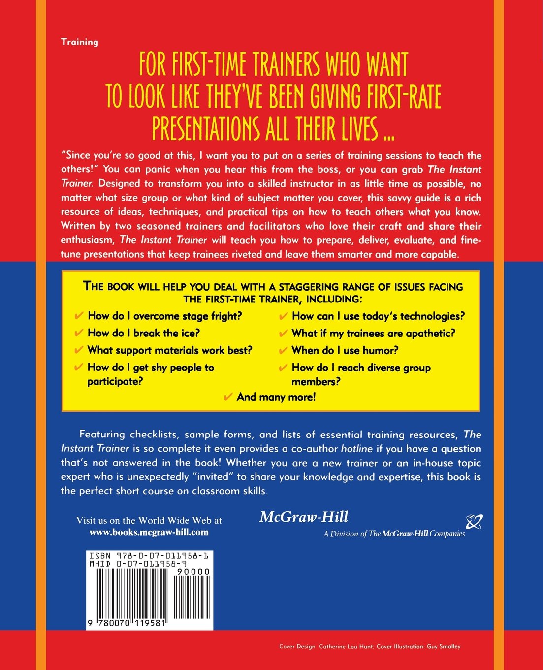 Written by two seasoned trainers and facilitators who love their craft and share their enthusiasm, The Instant Trainer will teach you how to prepare, deliver, evaluate, and finetune presentations that keep trainees riveted and leave them smarter and more capable.