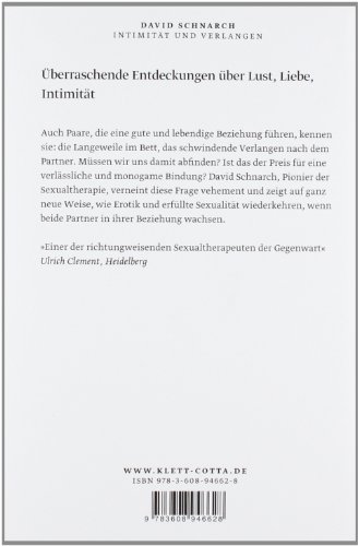 David Schnarch gilt als der führende Sexualtherapeut in den USA, wo er durch seine Publikationen, seine Radiosendungen und zahlreichen Vorträge einen hohen Bekanntheitsgrad erreicht hat. Er ist Klinischer Psychologe, war Professor für Urologie an der Louisiana State University und ist Direktor des »Marriage and Family Health Centre« in Colorado. In Europa gilt er als »einer der richtungsweisenden Sexualtherapeuten« der Gegenwart (Ulrich Clement).