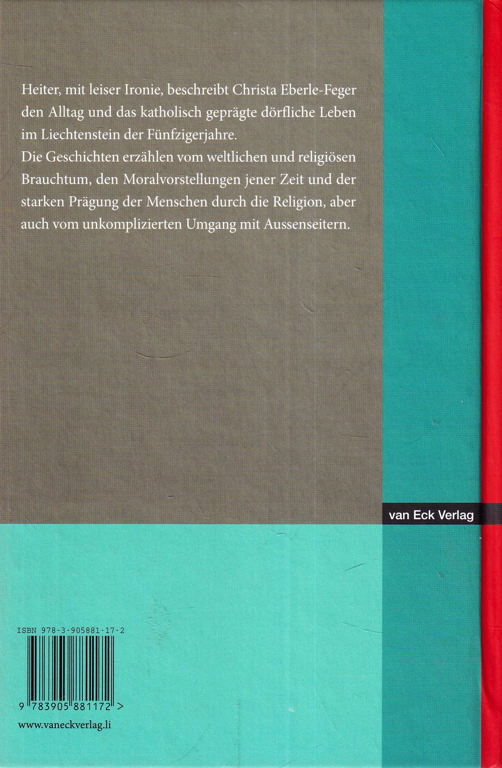 Heiter, mit leiser Ironie, beschreibt Christa Eberle-Feger den Alltag und das katholisch geprägte dörfliche Leben im Liechtenstein der Fünfzigerjahre.