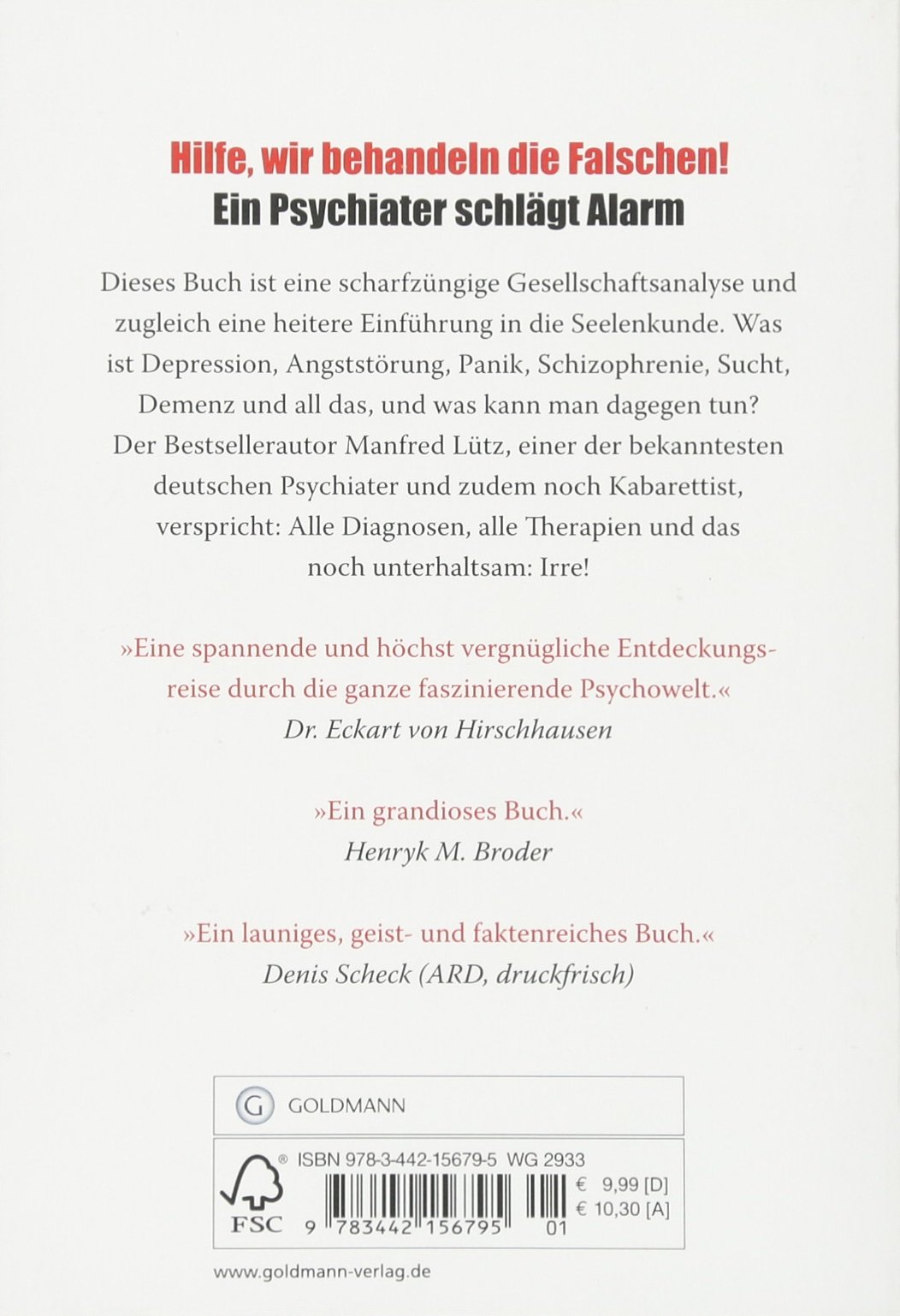 Dieses Buch ist eine scharfzüngige Gesellschaftsanalyse und zugleich eine heitere Einführung in die Seelenkunde. Was ist Depression, Angststörung, Panik, Schizophrenie, Sucht, Demenz und all das, und was kann man dagegen tun?