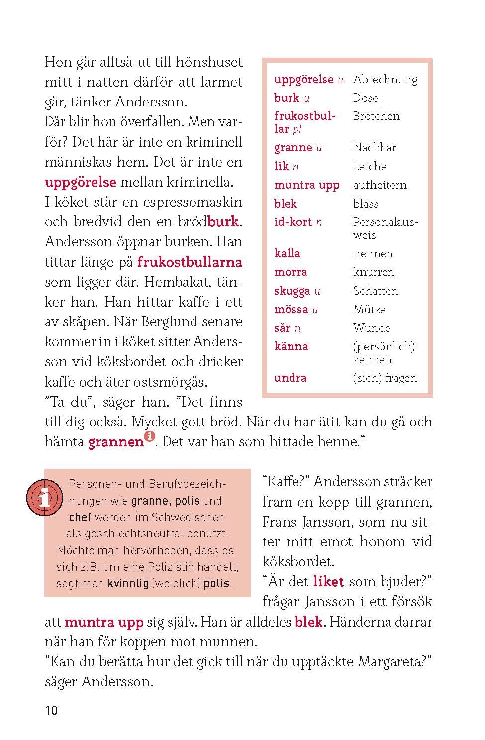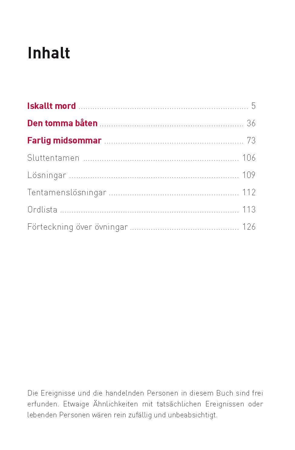 3 spannende Krimis auf Schwedisch: Schlüpfen Sie in die Rollen der Ermittler*innen und verbessern Sie Ihre Schwedisch-Kenntnisse ganz intuitiv. Muttersprachliche Autor*innen: Unsere Texte wurden von Muttersprachler*innen speziell für das Niveau A1 verfasst. Über 40 textbezogene Übungen: Die eingebundenen Übungen steigern die Lernfähigkeit und gliedern sich spielerisch in den Lesefluss ein. Vokabelangaben auf jeder Seite: Schwierige Wörter werden auf jeder Seite angegeben und sind ohne umständliches Blättern sofort griffbereit. Umfangreiches Glossar: Das alphabetische Glossar am Ende des Buches ermöglicht es, die Wörter aus allen Texten auch nachträglich nachzuschlagen. Infokästen zu Sprache und Grammatik: Zusätzliche Informationen, Tipps und Wissenswertes zu Sprache, Grammatik und Landeskunde ergänzen Ihren Lernkrimi Kurzkrimi „Iskallt mord“. Ansprechendes Design Die Lernlektüre überzeugt durch ein modernes, optisch ansprechendes Design.