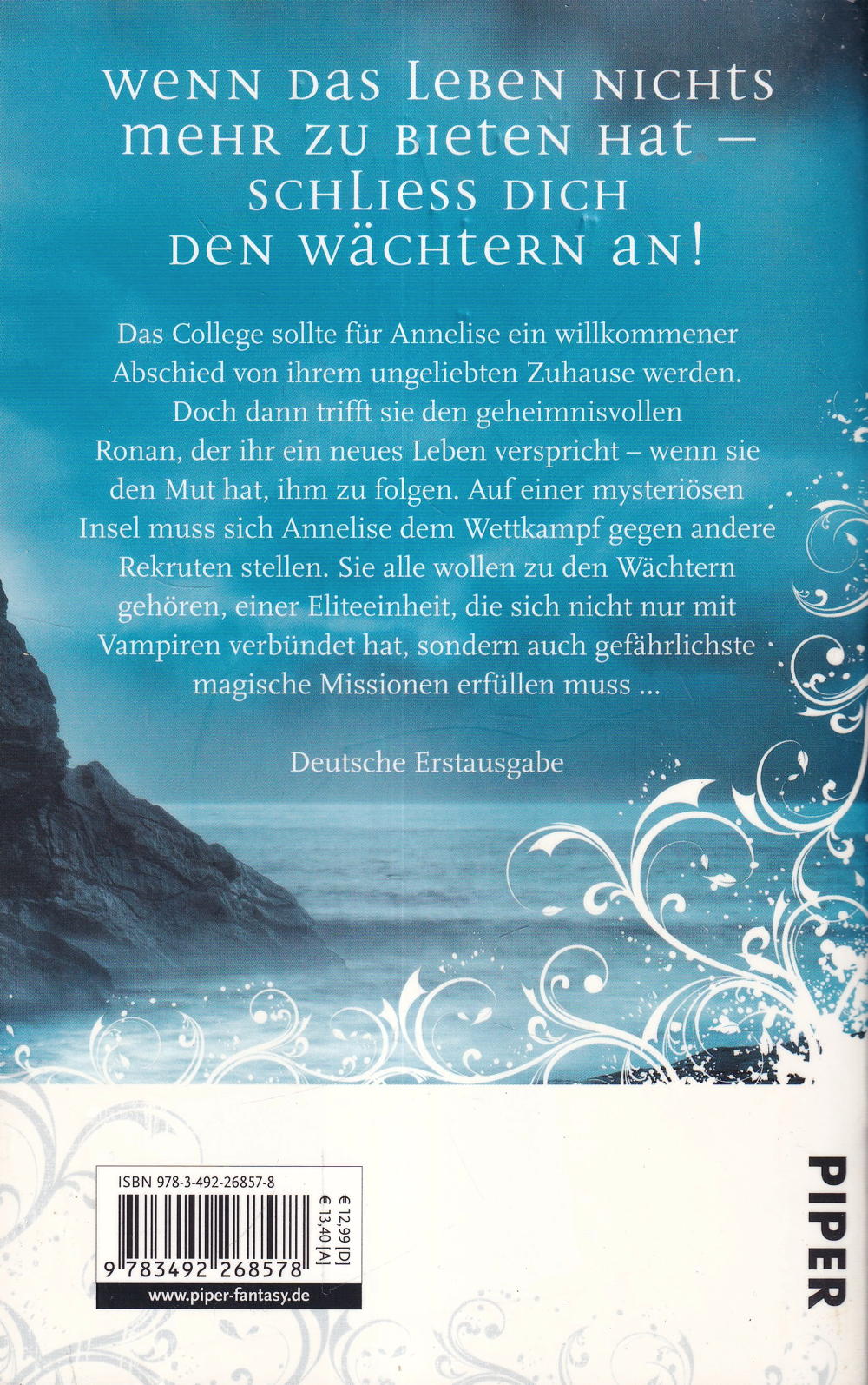Wenn das Leben nichts mehr zu bieten hat – schliess dich den Wächtern an! Die Zeit im College sollte für Annelise ein willkommener Abschied von ihrem ungeliebten Vater und ihrer Stiefmutter werden. Doch dann trifft sie den geheimnisvollen Ronan, der ihr ein neues Leben verspricht – wenn sie den Mut dazu hat, ihm zu folgen. Auf einer mysteriösen Insel vor der Küste Englands muss sich Annelise dem Wettkampf gegen andere Rekruten stellen. Sie alle wollen zu den Wächtern gehören, einer Eliteeinheit, die sich nicht nur mit Vampiren verbündet, sondern auch gefährlichste magische Missionen zu erfüllen hat …
