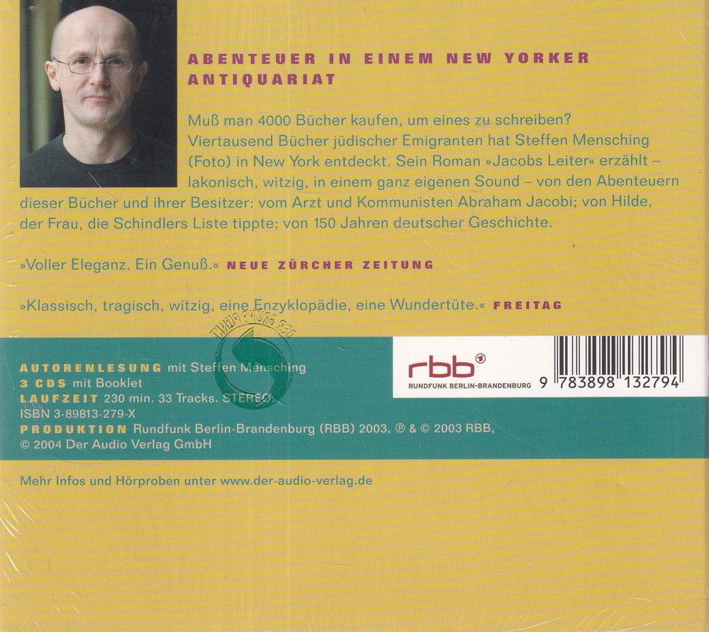 Viertausend Bücher jüdischer Emigranten hat Steffen Mensching (Foto) in New York entdeckt. Sein Roman »Jacobs Leiter« erzählt lakonisch, witzig, in einem ganz eigenen Sound - von den Abenteuern dieser Bücher und ihrer Besitzer: vom Arzt und Kommunisten Abraham Jacobi; von Hilde, der Frau, die Schindlers Liste tippte; von 150 Jahren deutscher Geschichte.