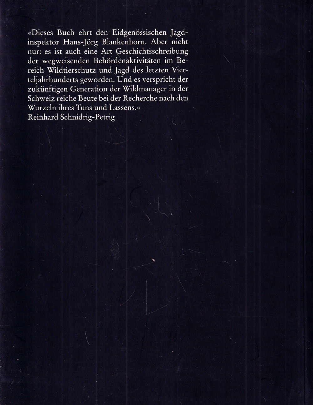 «Dieses Buch ehrt den Eidgenössischen Jagdinspektor Hans-Jörg Blankenhorn. Aber nicht nur: es ist auch eine Art Geschichtsschreibung der wegweisenden Behördenaktivitäten im Bereich Wildtierschutz und Jagd des letzten Vierteljahrhunderts geworden. Und es verspricht der zukünftigen Generation der Wildmanager in der Schweiz reiche Beute bei der Recherche nach den Wurzeln ihres Tuns und Lassens. »