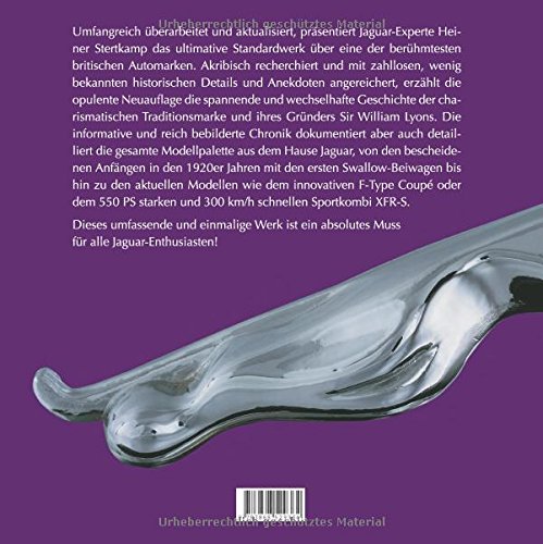 Das Standardwerk über Jaguar 560 Seiten, über 1500 AbbildungenExklusives Geschenkbuch für alle Jaguar-FansZahllose historische Details und technische Daten sämtlicher Modelle Umfangreich überarbeitet und aktulisiert, präsentiert Jaguar-Experte Heiner Stertkamp das ultimative Standardwerk über eine der berühmtesten britischen Automarken. Akribisch recherchiert und mit zahllosen historischen Details und Anekdoten angereichert, erzählt die opulente Neuauflage die spannende und wechselhafte Geschichte der charismatischen Traditionsmarke und ihres Gründers Sir William Lyons. Die informative und reich bebilderte Chronik dokumentiert aber auch detailliert die gesamte Modellpalette aus dem Hause Jaguar, von den bescheidenen Anfängen in den 1920er Jahren mit den ersten Swallow-Beiwagen bis hin zu den aktuellen Modellen wie dem innovativen F-Type Coupè oder dem 550 PS starken und 300km/h schnellen Sportkombi XGR-S. Dieses umfassende und einmalige Werk ist ein absolutes Muss für alle Jaguar-Enthusiasten!