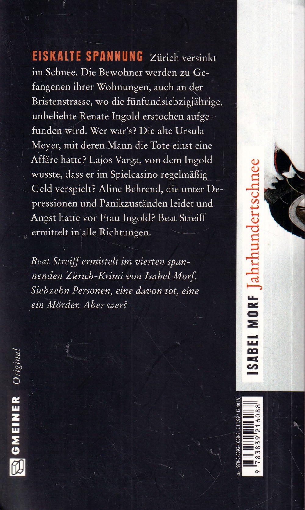Zürich versinkt im Schnee. Die Bewohner werden zu Gefangenen ihrer Wohnungen, auch an der Bristenstrasse, wo die fünfundsiebzigjährige, unbeliebte Renate Ingold erstochen aufgefunden wird. Wer war's? Die alte Ursula Meyer, mit deren Mann die Tote einst eine Affäre hatte? Lajos Varga, von dem Ingold wusste, dass er im Spielcasino regelmässig Geld verspielt? Aline Behrend, die unter Depressionen und Panikzuständen leidet und Angst hatte vor Frau Ingold? Beat Streiff ermittelt in alle Richtungen.