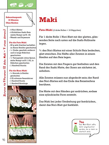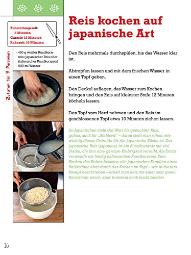 Die japanische Küche liegt zurzeit im Trend, und das aus gutem Grund: Japanische Gerichte sind nicht nur gesund und gut bekömmlich, sondern auch ästhetisch äusserst ansprechend, abwechslungsreich und lecker. Mit über 50 einfachen und zugleich raffinierten Rezepten sowie hilfreichen Step-by-Step-Anleitungen richtet sich dieses Buch besonders an Fans der japanischen Küche, die sich selbst bislang noch nicht an Sushi, Yakitori, Onigiri und Co herangewagt haben. Hintergrundinformationen zu wichtigen Utensilien und Zutaten sowie appetitanregende Fotos und ein schönes, modernes Design runden dieses aussergewöhnliche Kochbuch ab.