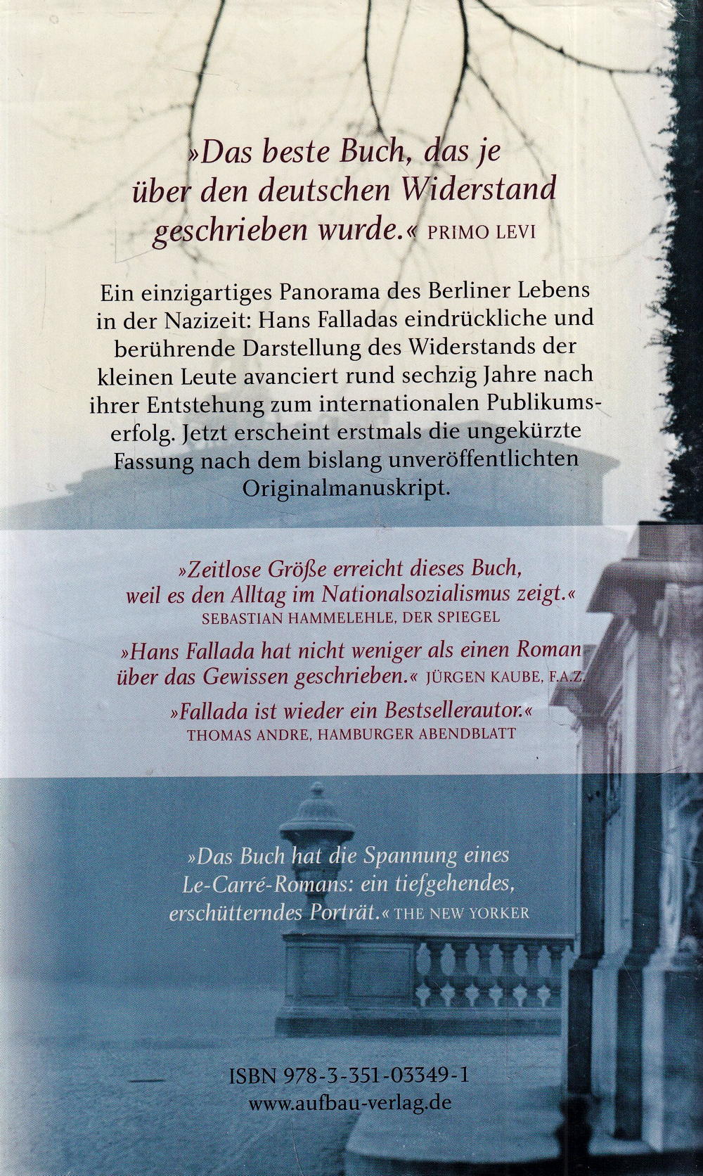 Ein einzigartiges Panorama des Berliner Lebens in der Nazizeit: Hans Falladas eindrückliche und berührende Darstellung des Widerstands der kleinen Leute avanciert rund sechzig Jahre nach der Entstehung zum internationalen Publikumserfolg. Jetzt erscheint erstmals die ungekürzte Fassung nach dem bislang unveröffentlichten Originalmanuskript.