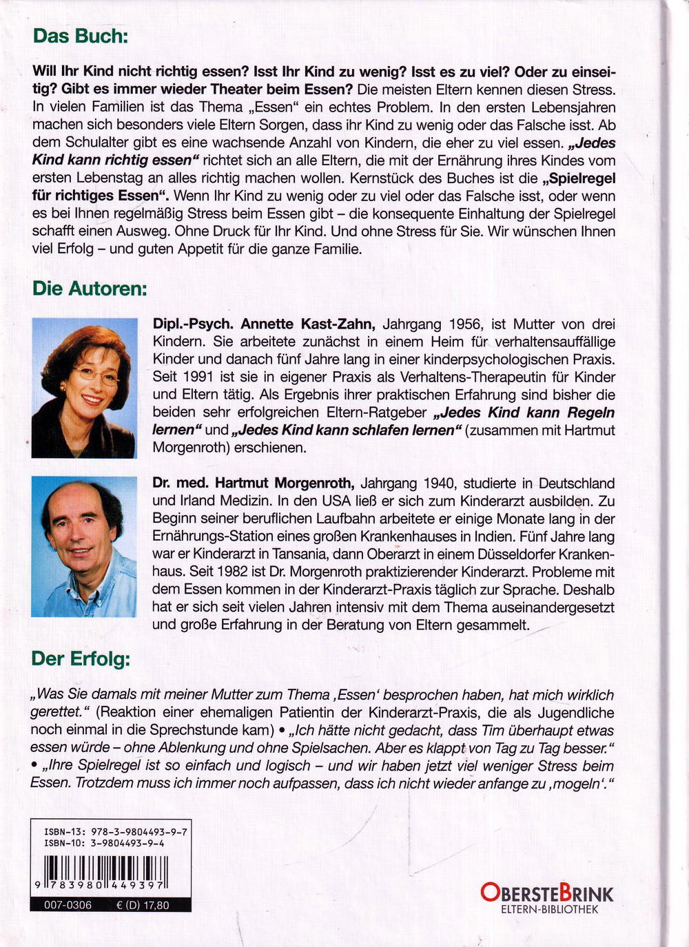 Will ihr Kind nicht richtig essen? Isst Ihr Kind zu wenig oder zu viel? Gibt es immer wieder Theater beim Essen? Das Buch richtet sich an Eltern, die vom ersten Lebenstag an alles richtig machen wollen. Es zeigt, dass die konsequente Einhaltung der "Spielregel für richtiges Essen" einen Ausweg schafft, ohne Druck für Ihr Kind und ohne Stress für Sie.