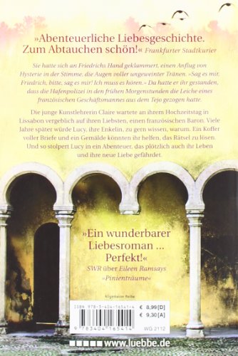 Sie hatte sich an Friedrichs Hand geklammert, einen Anflug von Hysterie in der Stimme, die Augen voller ungeweinter Tränen. "Sag es mir, Friedrich, bitte, sag es mir! Ich muss es hören." Da hatte er ihr gestanden, dass die Hafenpolizei in den frühen Morgenstunden die Leiche eines französischen Geschäftsmannes aus dem Tejo gezogen hatte. Die junge Kunstlehrerin Claire wartete an ihrem Hochzeitstag in Lissabon vergeblich auf ihren Liebsten. Viele Jahre später würde Lucy, ihre Enkelin, zu gern wissen, warum. Ein Koffer voller Briefe könnte ihr helfen, das Rätsel zu lösen. Bald stolpert Lucy in ein Abenteuer, das auch ihr Leben und ihre neue Liebe gefährdet.